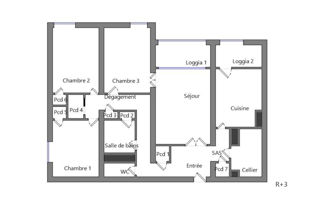 Ce logement est composé d’une entrée, une cuisine séparée avec un cellier, une grande pièce principale, 3 chambres, une salle d’eau, de nombreux placards, un wc séparé et 2 loggias.