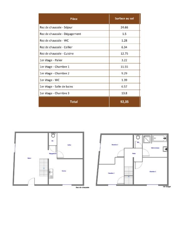 -A l’étage : 3 chambres, une salle de bain et un WC séparé.